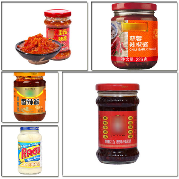 4.全自動辣椒醬加工設備主要采用防滴漏與拉絲的灌裝悶頭、灌裝升降系統、確保瓶口定位的定位系統和料位控制系統。